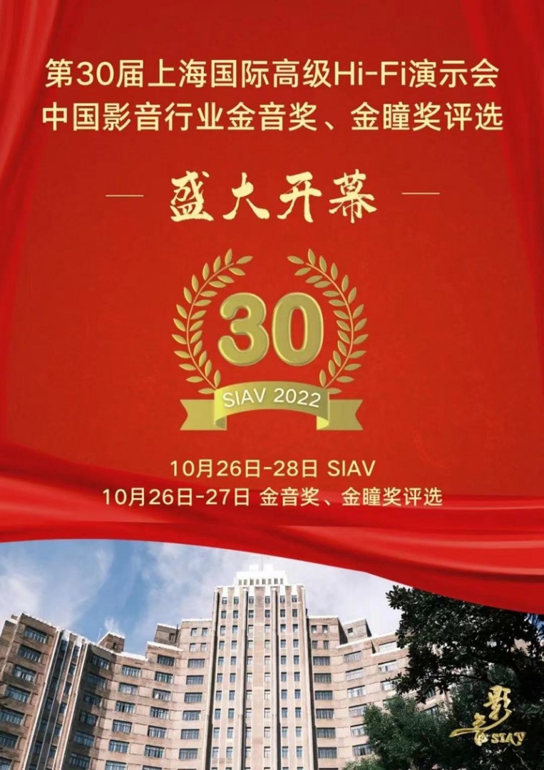 2022年10月26-28日举办第30届SIAV,以及同期进行的金音奖、金瞳奖现场评审和颁奖盛典。