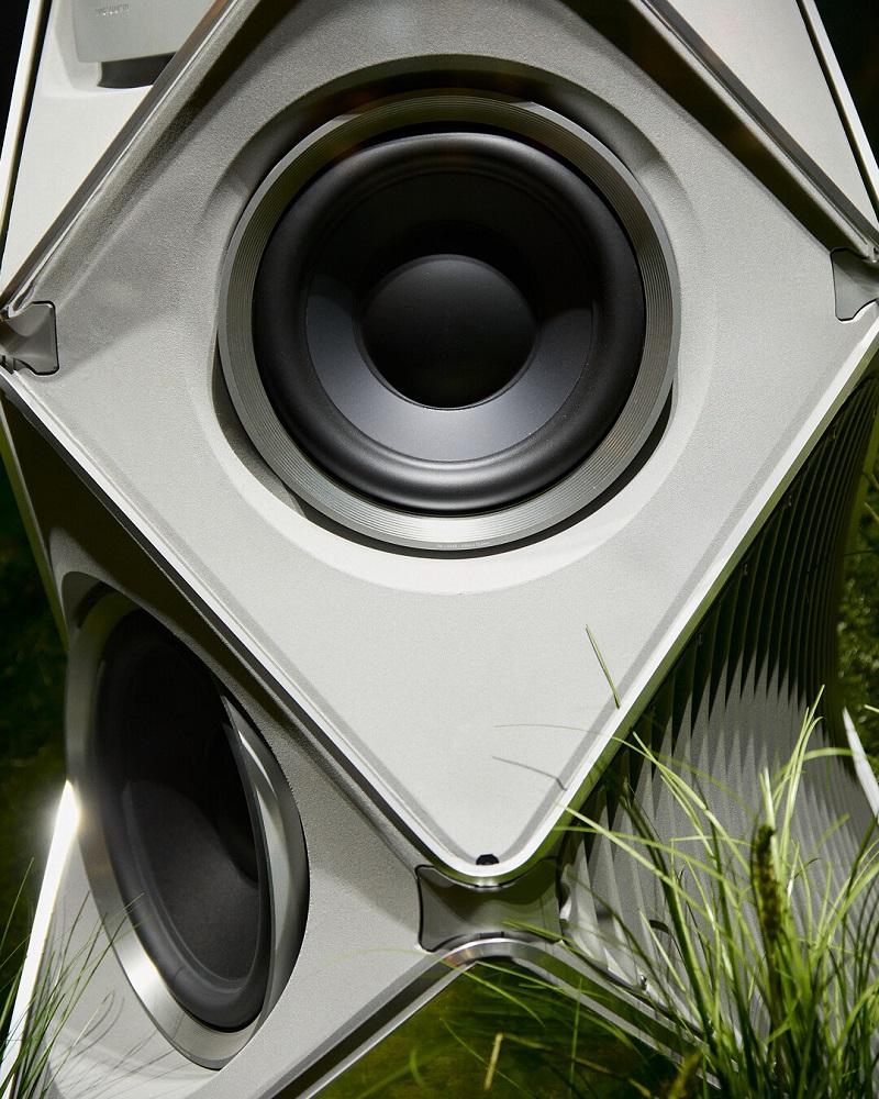 Titan Edition 再次采用棱角分明的 360 度设计,每个单元朝不同方向发声,以协助声音在房间中散播。这些造型独特的塔式音箱共搭载 18 颗单元: