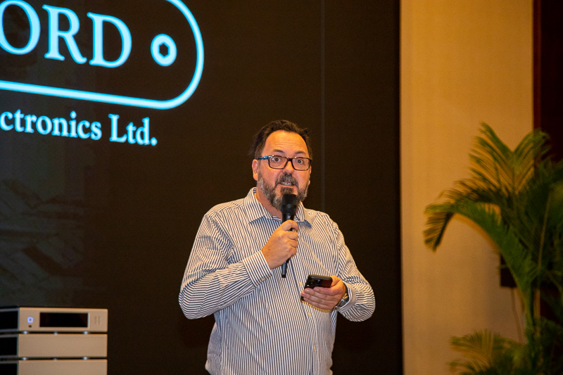 莅临此次盛会的还有泽森音响所代理的其他音响品牌的代表,包括Chord Electronics和弦的国际销售总监Colin Pratt先生、AudioQuest线圣亚太区销售总监Robert Wong先生、Aurender中国区代表薛宁先生,也纷纷上台致辞,介绍品牌发展动向及一些未来新品的预热。