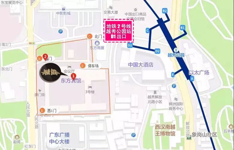 广州市流花路120号东方宾馆1号楼大堂12号铺 (地铁2号线越秀公园站D1出口)