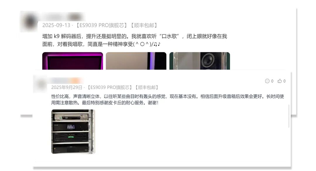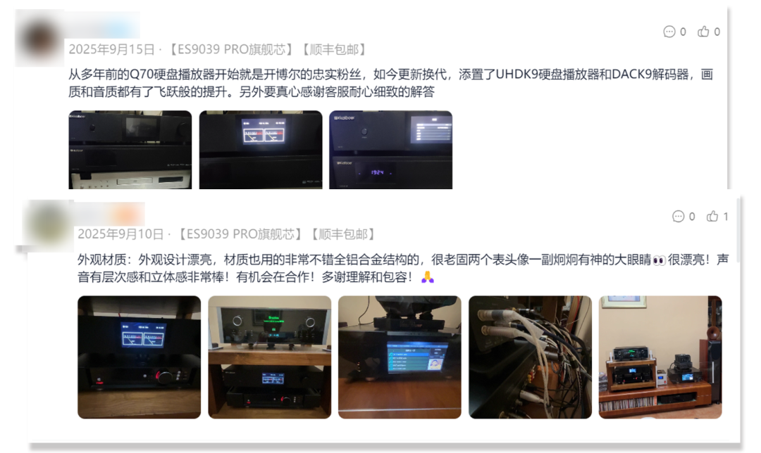 真就是——万事俱备只欠东风,好的HiFi生态,仅需一台DAC-K9坐镇其中!自亮相以来,DAC-K9在音频烧友群体中形成持续关注,下方为开博尔天猫/京东旗舰店真实用户反馈截图: