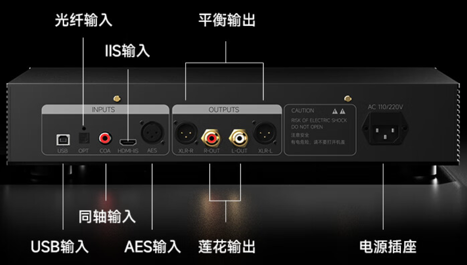 经真实用户实测显示,这种连接方式下,音频信号的背景噪声立竿见影地几乎低不可闻,大动态音乐的瞬态响应更显干净,尤其处理高码率复杂编曲时,能大幅提升声音细节,舒展声场,解码同一个母带级音频文件,能呈现更具备厅堂感的华丽声音。