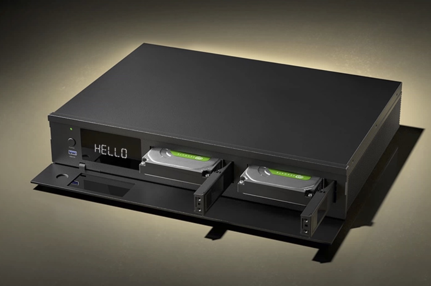 既然“K9”双旗舰可做到影音通吃,对烧友玩家下一步而言,便是储备精神粮食的时候了——UHD-K9 8K具备双隐藏式免拆硬盘仓,支持单盘至高24TB、双盘可达到48TB的豪迈扩容,3.5英寸SATA硬盘即插即用;