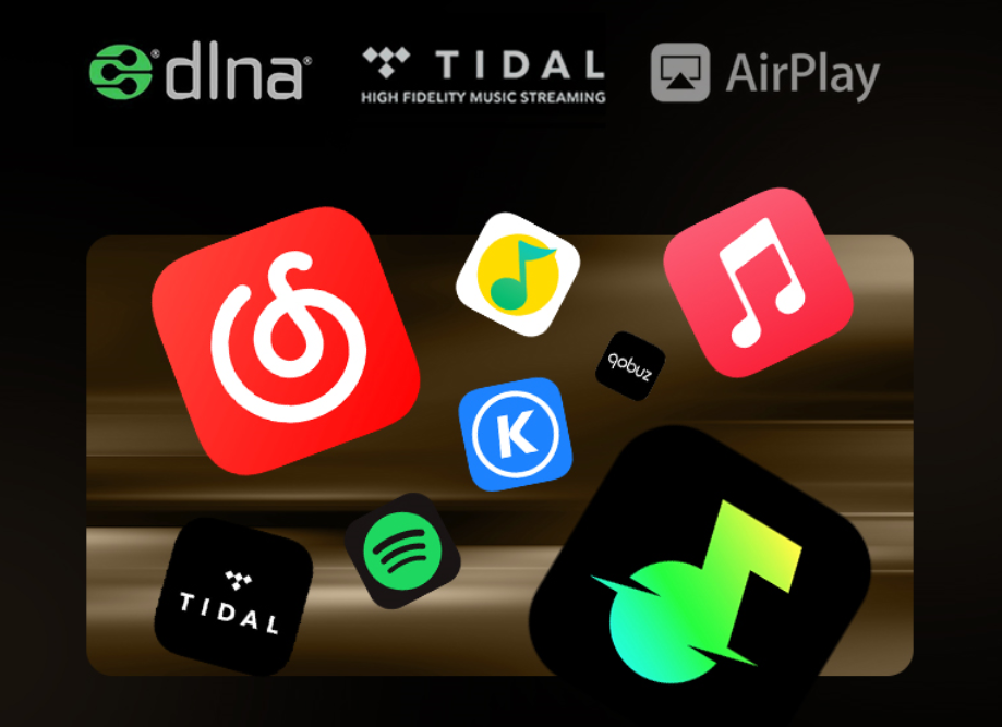 提到流媒体平台的支持,网易云音乐、QQ音乐、AppleMusic等15款主流流媒体APP的满血高采样率输出皆支持(当然,需用户自行开通对应平台的会员资格),此外,PUREOS还能实现强大的聚合收纳,Apple Music、Spotify的音源,可实现一键跳转播放。无论音乐收藏家还是流媒体重度爱好者,马上就能找到想听的歌。
