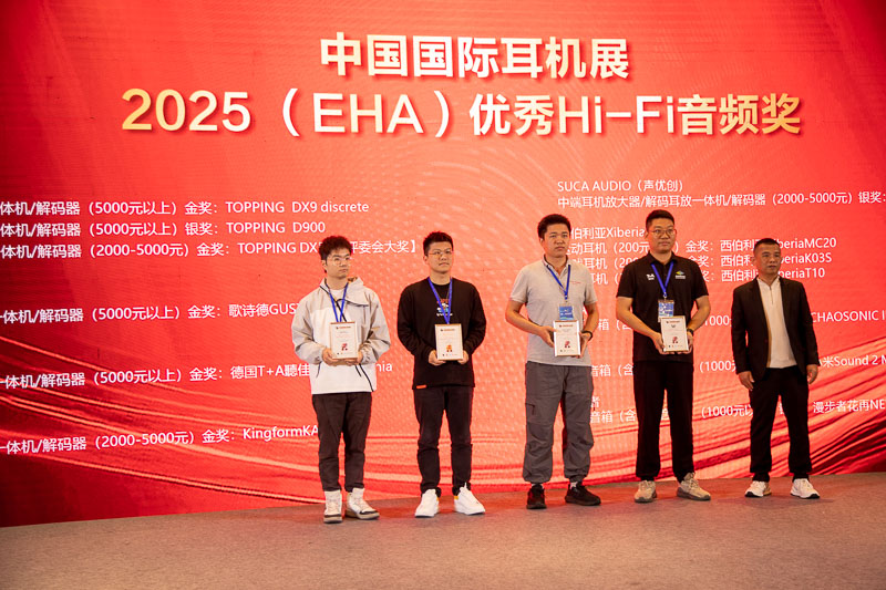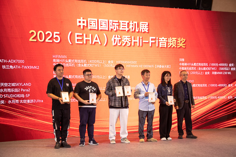 高峰论坛过后则是激动人心的颁奖环节,还颁发了多项重要奖项,包括:中国十大耳机品牌、国际十大耳机品牌、中国十大HiFi耳机品牌、中国十大数字音频品牌、中国优秀耳机经销商-总代理级、中国优秀耳机经销商-代理级以及年度EHA奖、优秀媒体奖等,表彰了在过去一年,行业中做出突出贡献的品牌和个人。