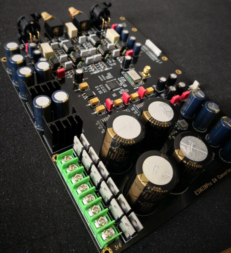 - 只把 ES9038PRO 当 DA 转换用(只使用内部的数、模转换部分功能,未采用 ES9038PRO 内部的 SPDIF 到 I2S 的分离功能、DoP协议等,由红芯 FPGA 控制板完成,做到数字、模拟相互独立