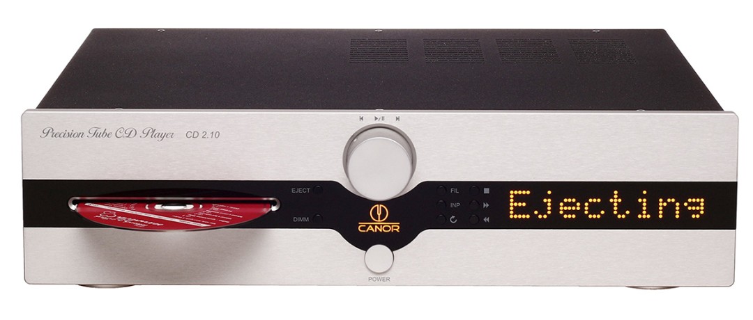 Canor长于真空管放大技术,就连数字讯源如CD唱盘,他们也要在模拟线上使用真空管放大。CD2.10 CD唱盘采吸入式读取机构,少了拖盘,比起自家另一台CD1.10要轻薄许多。数字模拟转换的部分,采用AK4490这颗32bit的DAC芯片,并加上了它们自家的真空管放大线路,一共使用4支6922的讯号管。为了降低噪声,内部采用了超对称被动式滤波器,同轴数字输入路径还经过变压器隔离噪声。