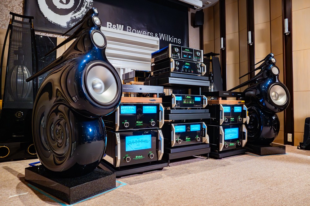 为了驱动 Nautilus 鹦鹉螺,富豪出动全套 McIntosh 扩大机群,前级是 C12000 + Controller,以 3 部 MC462 立体声后级,驱动高、中、低三个音路,最大颗的 12 吋(300 mm)超低音,则出动 MC 1.25 KW 单声道后级,数位讯源有 McIntosh 自家 MCD 1100 CD 唱盘,不过可能更多人想用数位串流,所以同时出动 MBL C41 数位串流 DAC,藏在 McIntosh 机群后方。