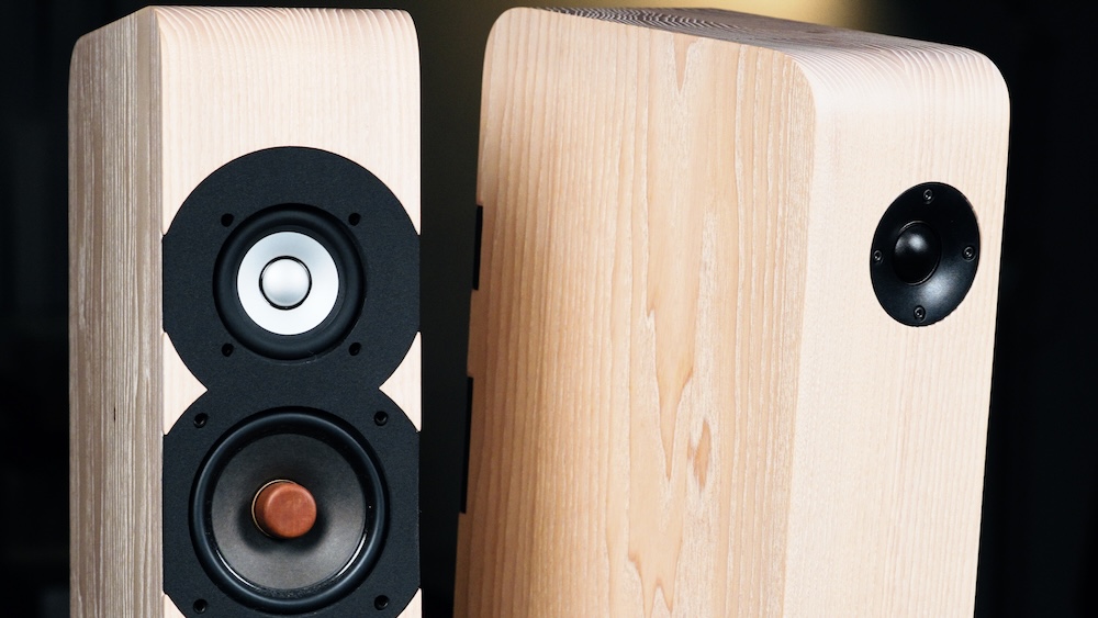 W8 还在全音域单元下方,多加了一颗搭载苹果木相位锥的 4 吋订制纸盆中低音,和 3 吋全音域单元间,仅以简单的一阶分音作分工。低音安排在侧面,W8 用的是一颗 6.5 吋长冲程低音,比 W5 所使用的 5 吋低音更大一号。别看它小小的,原厂规格说 W8 的低频响应可以下到 28Hz 的水平,以这种尺寸的音箱来说,绝对是超水平演出。并且,这个侧向低音仅负责「补强」低音,本身不经过任何分音器,由扩大机直接驱动。实际听起来,低音域部分并不感觉有明显的膨胀。