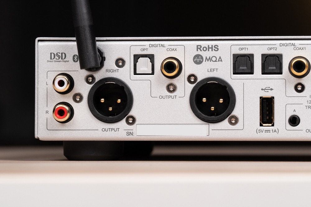 丰富的输出、入接口是 D7 的一大优势。D7 提供 5 种输入方式,包括数字同轴、光纤、USB Audio、USB 储存装置和蓝牙。USB Audio 可连接 PC 或 Mac 计算机,或是手机、平板计算机等装置,蛮多串流设备和音乐服务器配备 USB 输出,也可藉此连接 D7。蓝牙为 5.1 版本,可支持多种编码格时,其中也包括 aptX HD,相当于 CD 音质。输出部分,D7 的模拟输出兼具 RCA 和 XLR,充分满足不同的搭配需求。此外 D7 还提供了同轴数字输出和光纤输出各一组,等同是一台 USB DDC,让系统有更高的兼容性。D7 的耳机输出也不含糊,具有高输出功率,能对应的负载阻抗从 20 欧姆至 600 欧姆,对多数耳机都能因应。