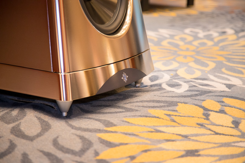 作为一款完全密闭式结构的超旗舰,Titan 的体积达 540mm × 2150mm × 1080mm,内部容纳八枚驱动单元,并由五个独立模块堆叠而成。箱体采用独家的五层结构设计:三层特制铝板夹以两层减震材料,以极高刚性控制箱体共振。前障板更是使用 75mm 厚航空铝材经特别热处理后 CNC 精雕而成。单元排列方式近乎同轴:中央为 Lattice 高音,两侧为 150mm 中音、185mm 中低音以及 260mm、320mm 低频单元,而最底部的 32cm 超重低频则负责 28Hz 以下的深潜频段。所有驱动单元均为 YG 内部自主生产,为了实现最大一致性与最高品质控制,完全不使用外供单元。
