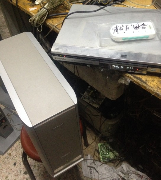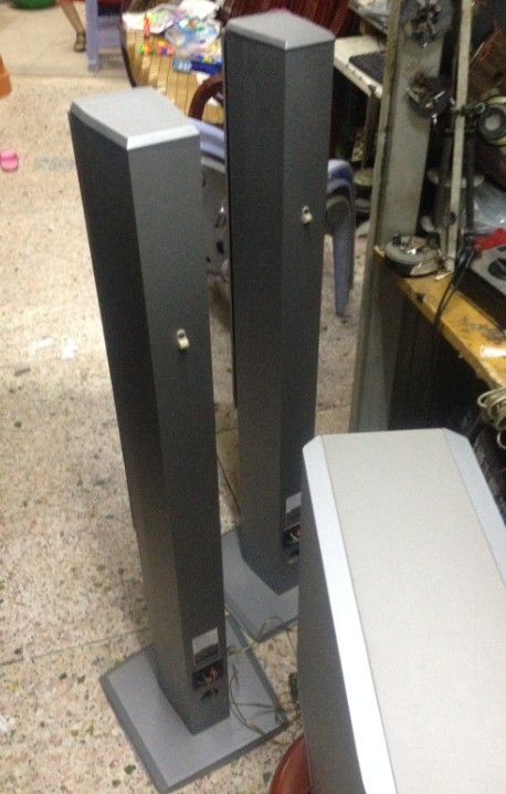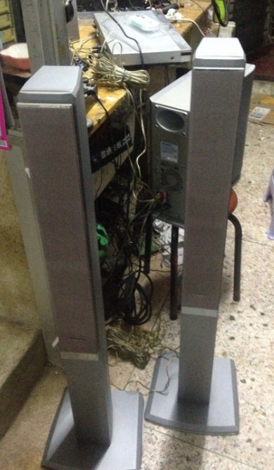 五只小箱, 一只低音炮带功放, 炮重四五十斤, DVD可以放碟,做前级,可以接电脑,电视手机, 带收音功能. 配学习控.可以大小声及过曲功能.
