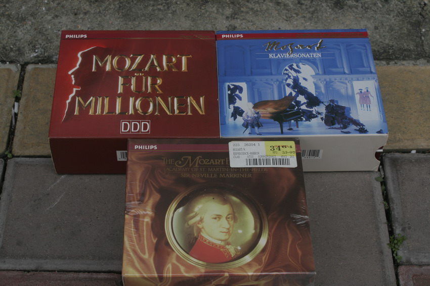 如图,有3套莫扎特5CD套装,全部德国飞利浦1988年01首版全银,一套没有拆封基本9.5新,一套800元