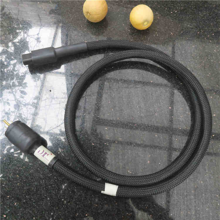 英国早期金丝韵发烧电源线 , 早期英国金丝韵无氧铜加单晶铜发烧电源线,线材经过多次洗擦后线身的字已经没有了,线身非常柔软,胶皮弹性好,线带头长度1.65到1.68米,线径16MM粗,单支芯约3平方左右,线材超值
