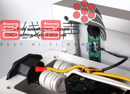 此外,MEGA X内置4条12AWG美国顶级单支纯铜线作内部接线,导电能力强之外,当中零线和火线独立分开接驳,以双鱼钩式接线及螺旋式绕线方式接驳,令令两极的相互干扰减至最低与及有效缓解电流冲击,绝缘层特别以mica(云母)物料制作,比一般PVC/Telfon有更佳绝缘效果。