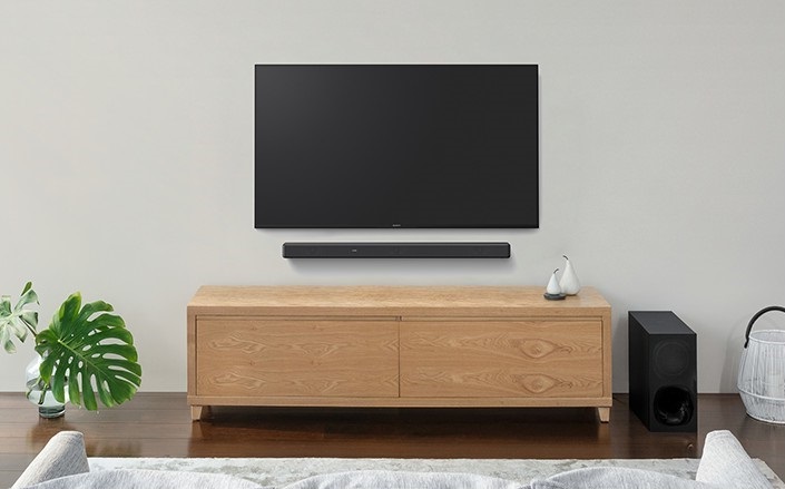 HT-G700简单的前置条形音箱、加上无线低音炮,无需安装额外的后置环绕音响或顶置音箱,即可实现7.1.2 虚拟环绕效果。演员的声音细节,被还原得更加丰满,清晰呈现各自不同特点的音色。约160mm大口径的无线连接低音炮,厚重的低音冲击感、更带来电视无法实现的震撼体验。