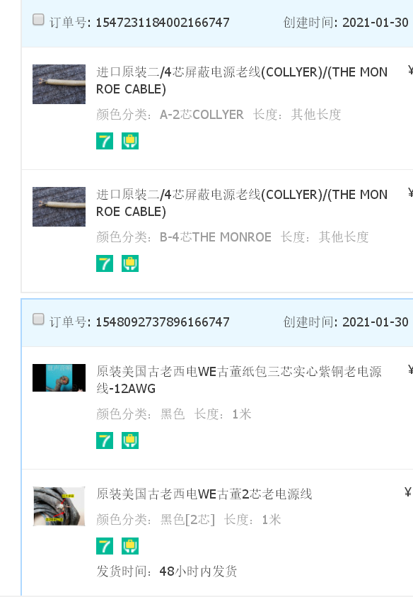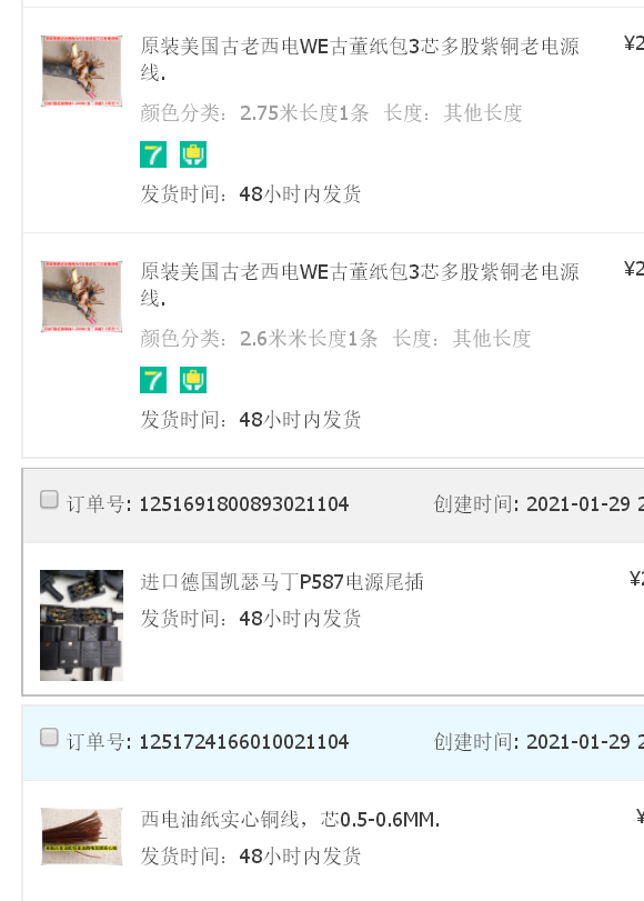 1:货物名称及数量:经典老西电3芯电源线40年代