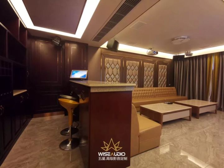 整个影音室简洁大气,奢华典雅。不需要多余冗杂的元素。在此环境下观影唱K,都真正能享受到舒适惬意的那种生活品质感。