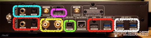 蓝色框框:S/PDIF 光纤及同轴输入各一组。