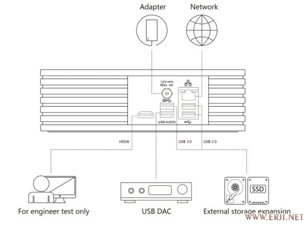 由此看来Silent Angel Z1尽管主要目的是为了Roon Core而生,但其实是一部颇为完整的网络串流播放机,并非如同计算机或是Nas有许多与播放音乐无关的软硬件配置,但却有类似的应用能力。Z1以整块铝合金CNC切削机壳,能直接让内部热量透过机壳传导散热而不需要风扇与散热孔,订制音乐播放专用的主电路板,低噪音,可播放高质量音乐,采用最短路径让数据传输更纯净,消耗功率更少,使得电源噪声产生得更少,确保更稳定的USB和网络讯号。独立USB AUDIO专用电路让USB AUDIO处理得以隔离,减少干扰。最终数据传输更加稳定,并减少了数据传输期间的抖动。内部采用超低功耗的Intel CPU(低至6W),减少来自CPU的电气噪声,并使Z1内部的讯号更稳定,并防止影响周围的音响设备。Z1设计极为充裕的电源供应,可输出160W功率,但Z1整体仅需40W,这能为主电路板和SSD提供充足稳定的功率。